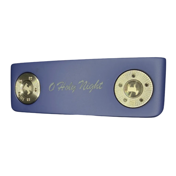 Finished in a deep midnight blue, the head and shaft are kissed with a star-lit splatter, capturing the stillness and wonder of that holy night. Nestled inside the cavity, a beautifully detailed nativity silhouette tells the story of hope and humble beginnings. On the sole, precision weights frame the engraved words “O Holy Night” above the GOATED mark, grounding your stroke with stability, confidence, and reverence.