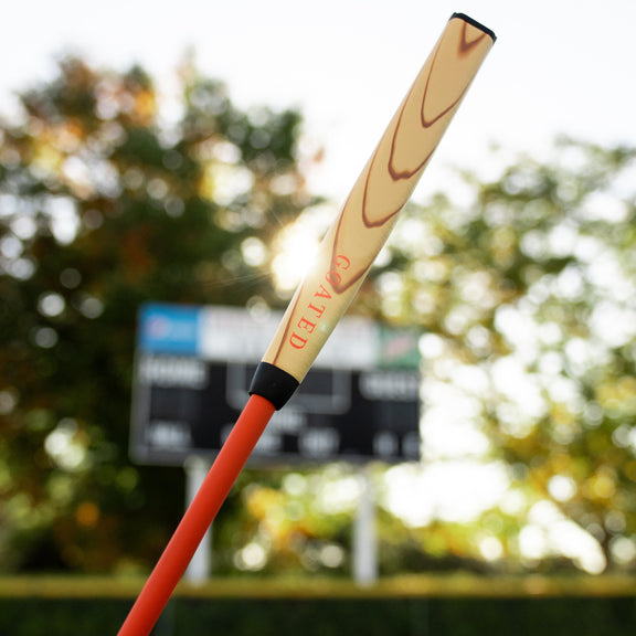 Hand-detailed with a natural wood-burn aesthetic and bold red GOATED branding, it delivers both style and performance. The soft, tacky texture provides a confident feel and steady hold through every stroke.